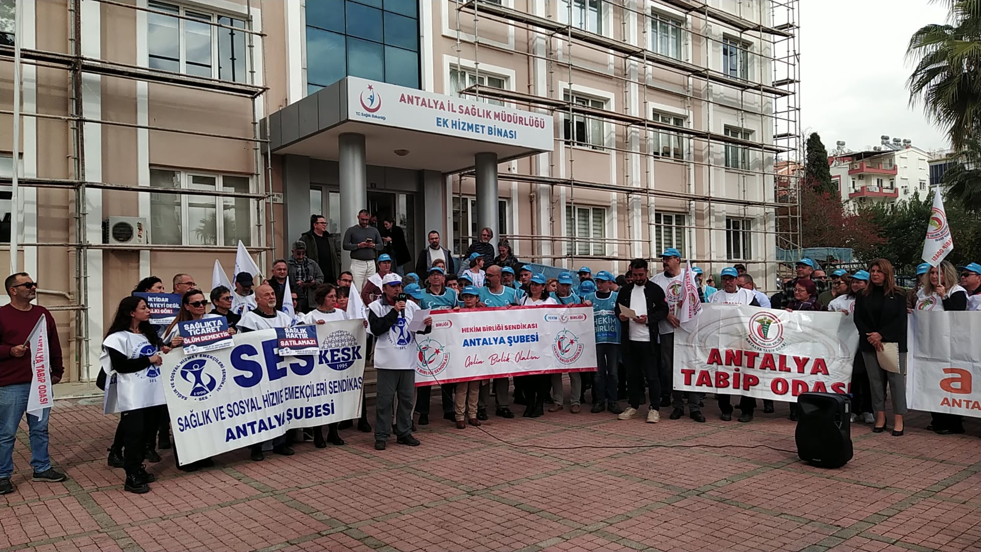 Aile Hekimleri ve Aile Sağlığı Merkezi Çalışanları olarak “Eziyet Yönetmeliği” olarak nitelendirdikleri Aile Hekimliği Sözleşme ve Ödeme Yönetmeliği’ne karşı 5 günlük iş bırakma eylemi başlattı. Antalya 'da bulunan sağlık emek ve meslek örgütleri iş bırakma eylemi nedeniyle Antalya İl Sağlık Müdürlüğü önünde toplanarak yönetmeliği protesto etti. Sağlık emek ve meslek örgütü temsilcileri sırayla yönetmeliğe karşı tepkilerini dile getirdiler.