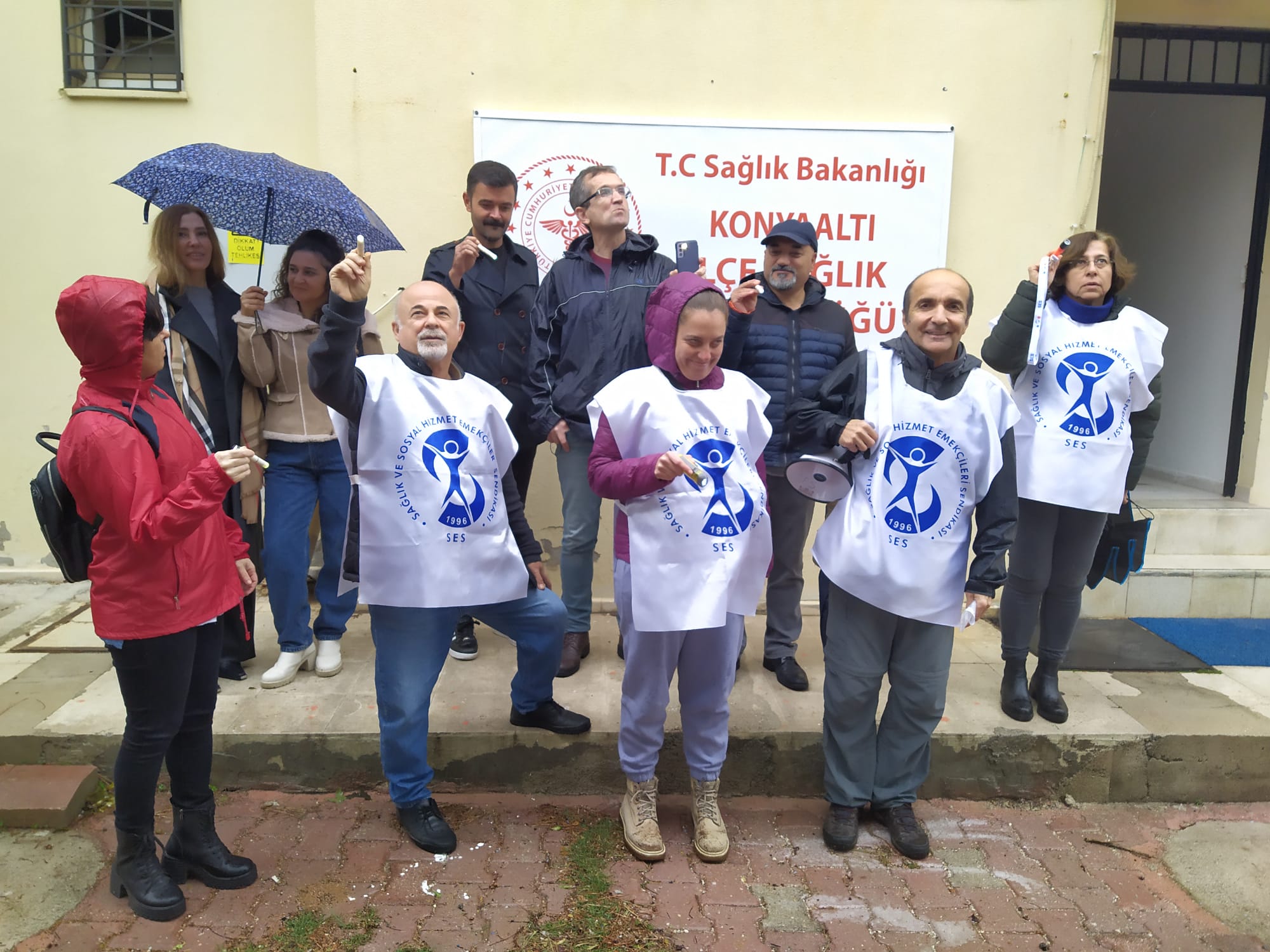 Aile Hekimleri ve Aile Sağlığı Merkezi Çalışanları “Eziyet Yönetmeliği” olarak nitelendirdikleri Aile Hekimliği Sözleşme ve Ödeme Yönetmeliği’ne karşı başlatılan 5 günlük iş bırakma eylemi ikinci gününde de devam ediyor. Sağlık ve Sosyal Hizmet Emekçileri Sendikası (SES) Antalya Şube üyeleri eylemin ikinci gününde Konyaaltı İlçe Sağlık Müdürlüğü önünde basın açıklaması yaparak yönetmeliğin geri çekilmesini istedi. Yağmur altında gerçekleşen eylemde “ Sağlığa Bakan Arıyoruz” pankartı açan SES üyeleri yanlarında getirdikleri fenerle Sağlık Bakanını aradılar.