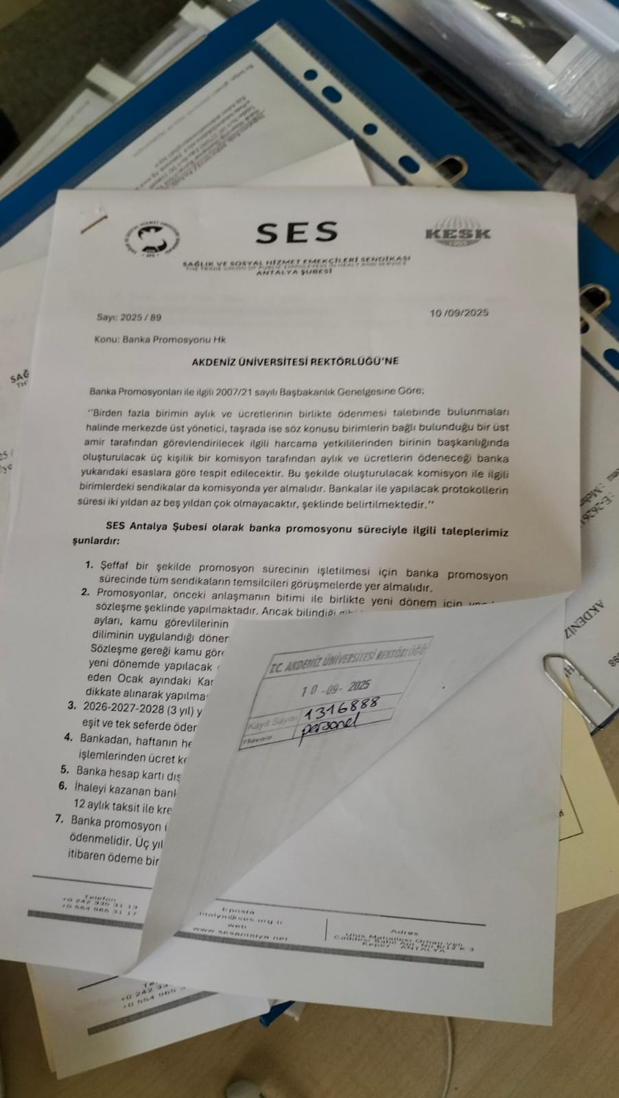mli bir gündem başlığı haline geldi. Sağlık ve Sosyal Hizmet Emekçileri Sendikası (SES) Antalya Şubesi, banka promosyonu konusunda taleplerini İl Sağlık Müdürlüğü ve Akdeniz Üniversitesi yönetimine iletti.