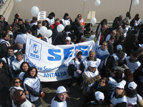 Antalya’dan yüzlerce sağlık ve sosyal hizmet emekçisi ile tıp fakültesi öğrencisinin de katıldığı sağlıkta